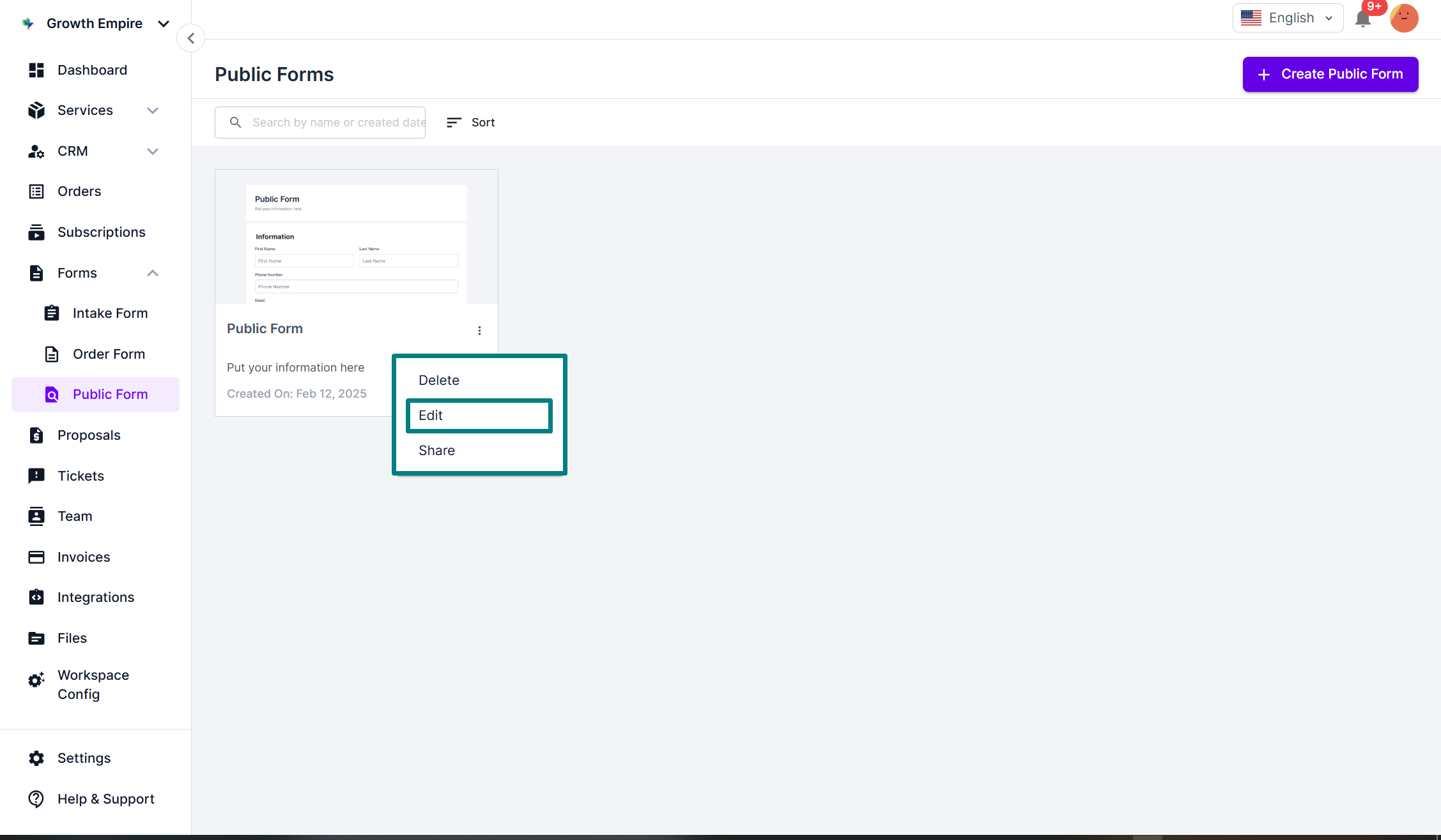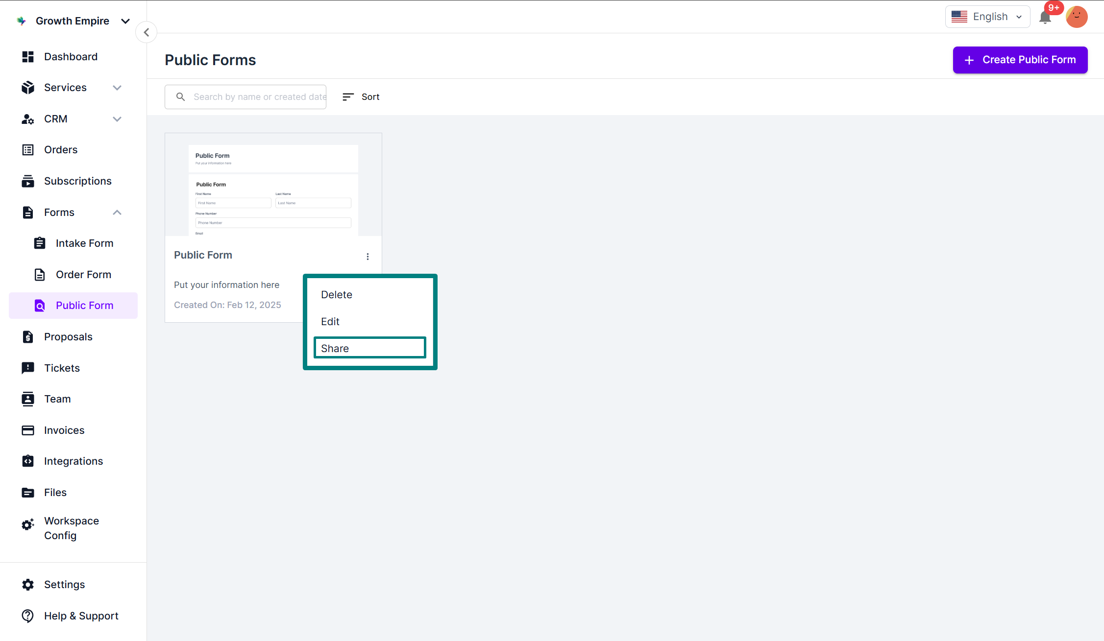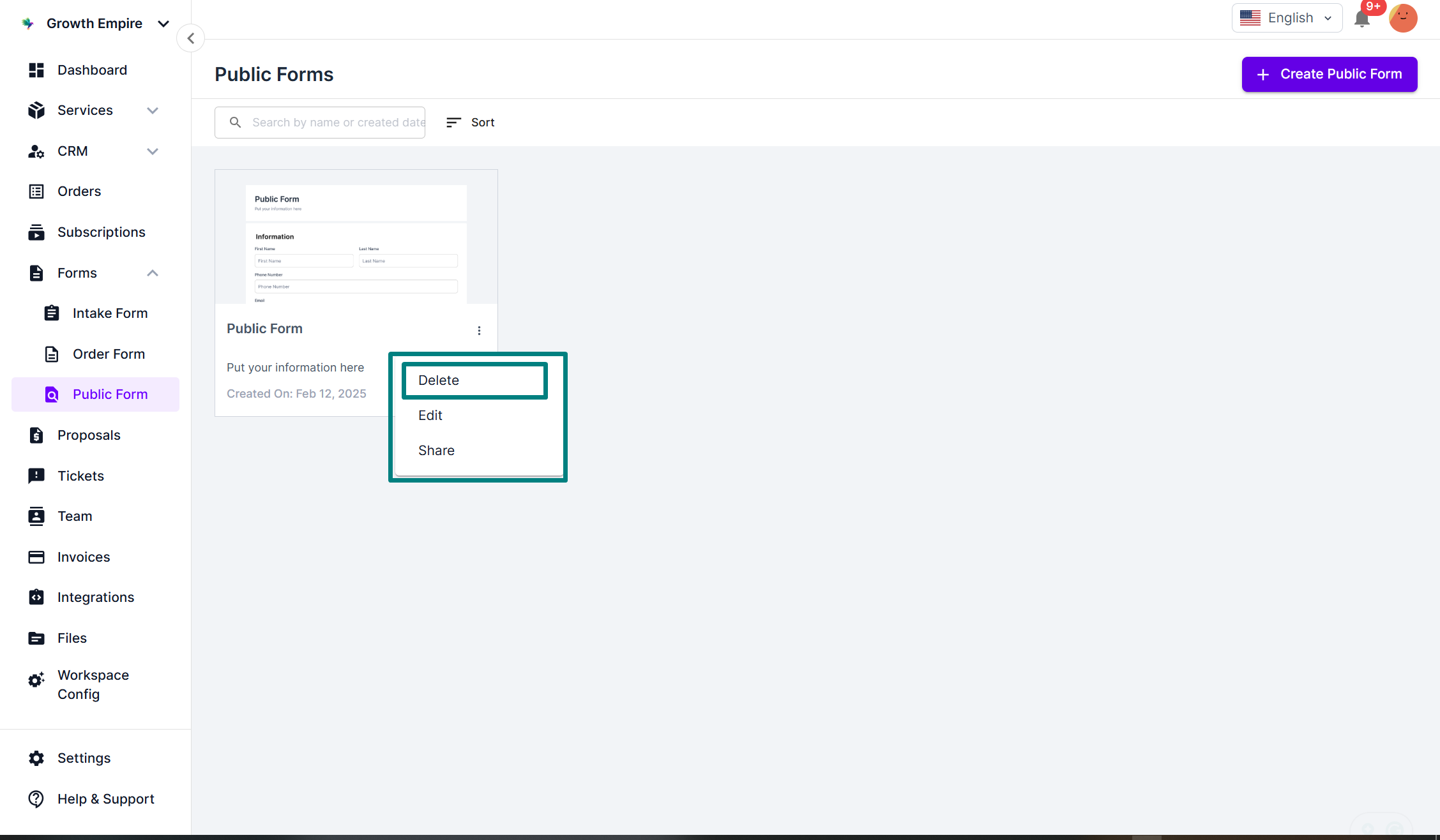 The **Public Form** feature in **Agency Handy** allows Super Admins and Admins to create customizable, stand-alone forms that are independent of any services. This feature supports multiple sharing methods (email, links, and iframes) and centralizes response management for easy access and analysis.