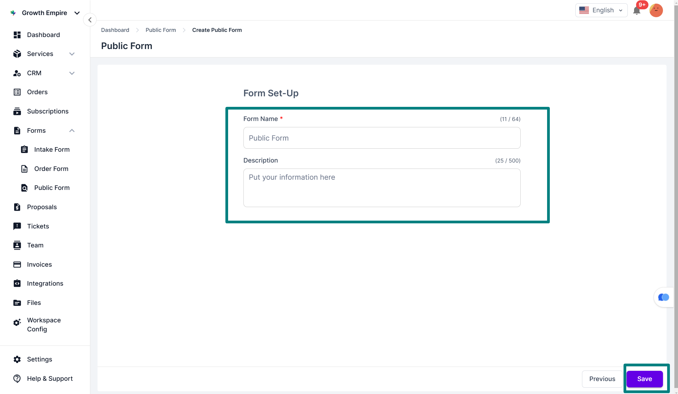 * **Form Creation:** Users can successfully create and save a public form with metadata and fields.