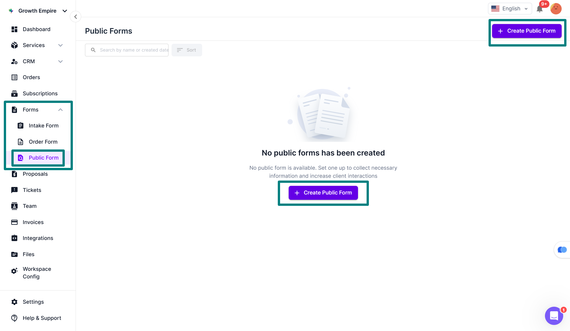 * Log in to **Agency Handy** and navigate to the **Public Forms** section under **Forms**.