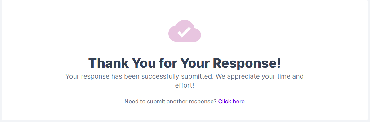 * A notification will pop up indicating your successful submission. If you want to submit another response, click the **Click here** button.<br>