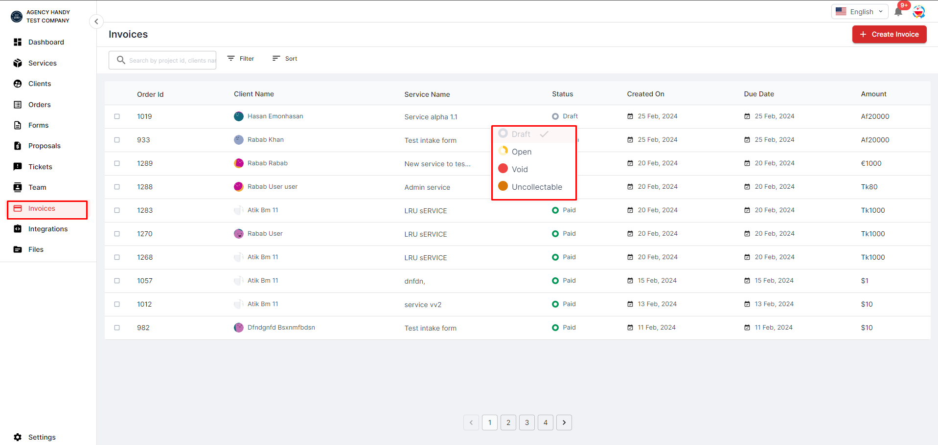 * **Log in to AgencyHandy:** Access your AgencyHandy account using your credentials. Navigate to Invoices: Locate the "Invoices" section in the dashboard menu.&#x20;