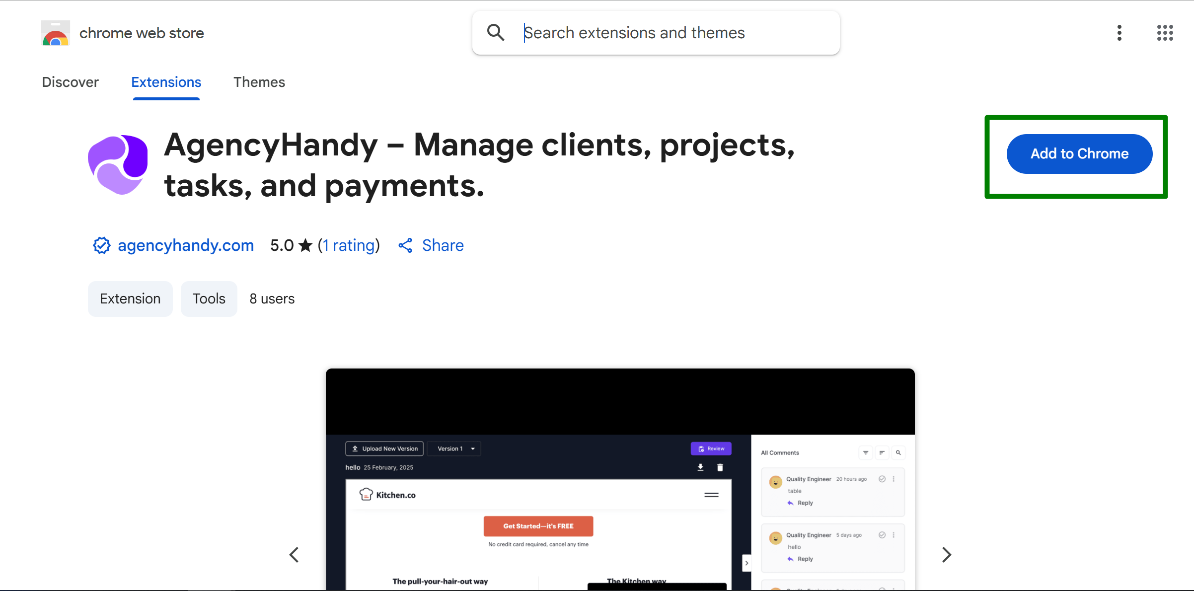 * Install the Agency Handy browser extension