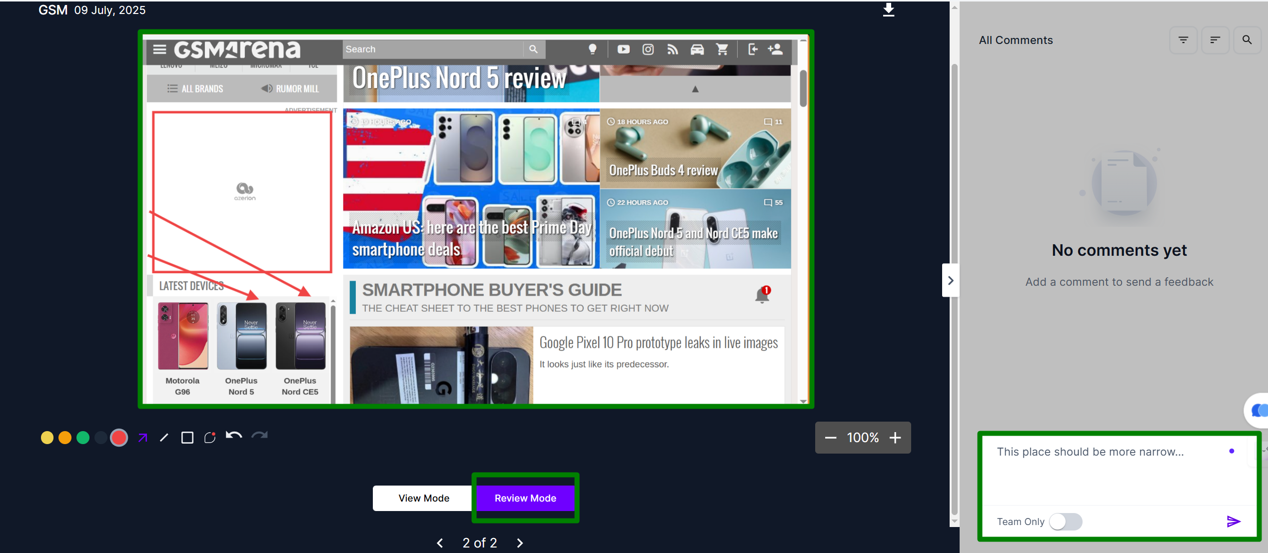 * Click anywhere to leave a comment or right-click to draw a shape