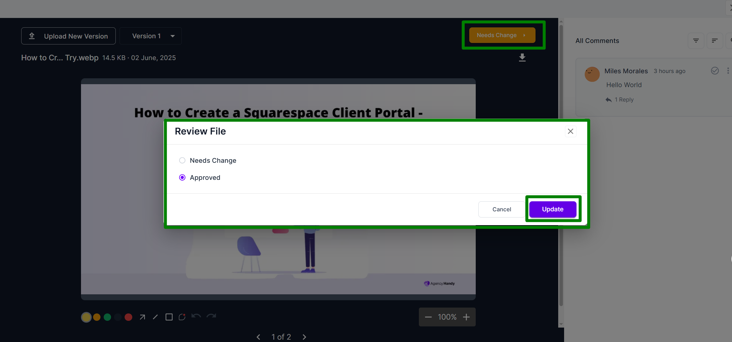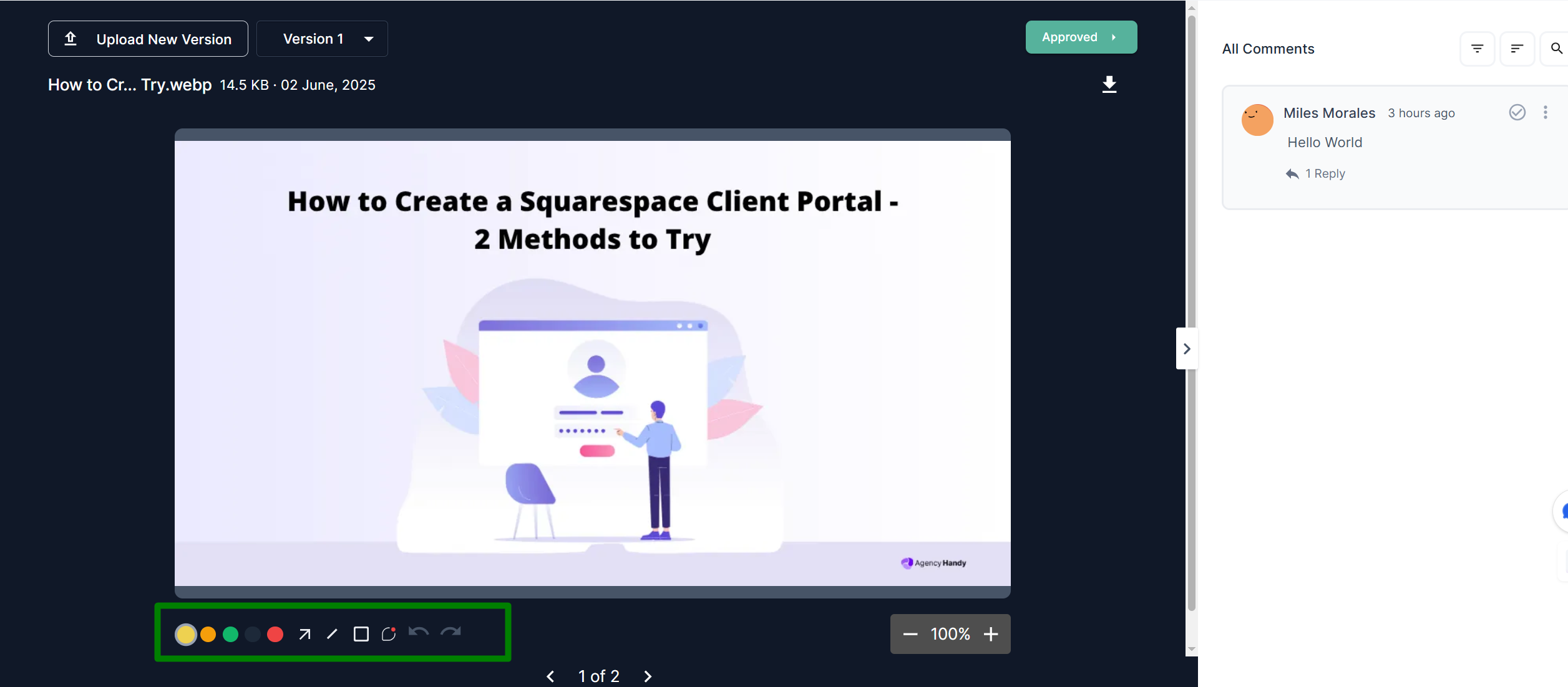 Agency Handy’s File Feedback system helps you and your clients leave precise, visual comments on images, videos, PDFs, and live websites—directly inside tasks and orders. With version control, threaded discussions, and built-in review tools, it’s designed to streamline feedback and approvals in one place.