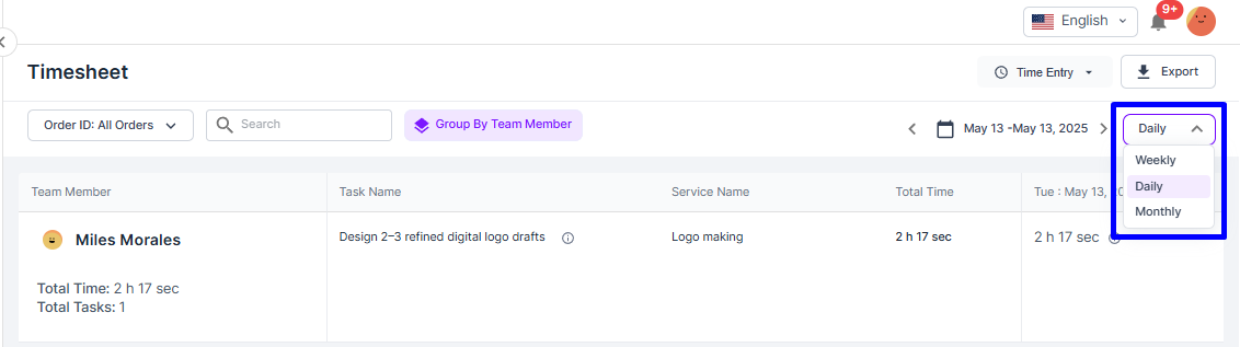 📌 *Only Admins and Superadmins can see team-wide time logs.*