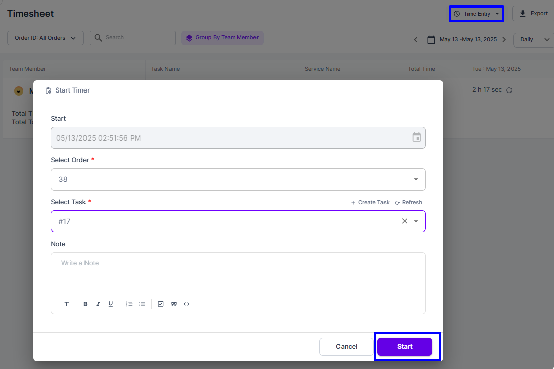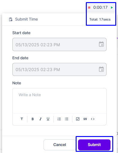 ⚠️ *If the task is marked as 'Done,' the timer will be disabled. If reopened, it can be started again.*