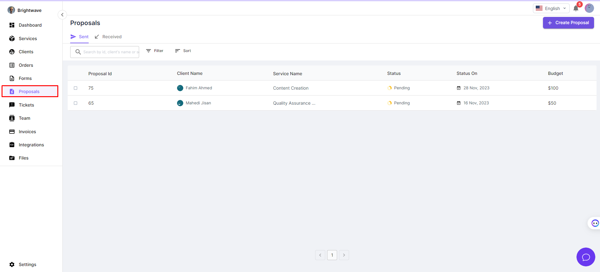 AgencyHandy's software includes the "Proposal" feature, which simplifies creating and sending quotes to clients. This tool ensures a smooth transition from inquiry to project initiation, presenting all necessary details in a well-organized and professional manner. It promotes transparent communication between the service provider and the client from the project's outset. The feature efficiently generates and sends quotations, providing a streamlined experience for all involved.