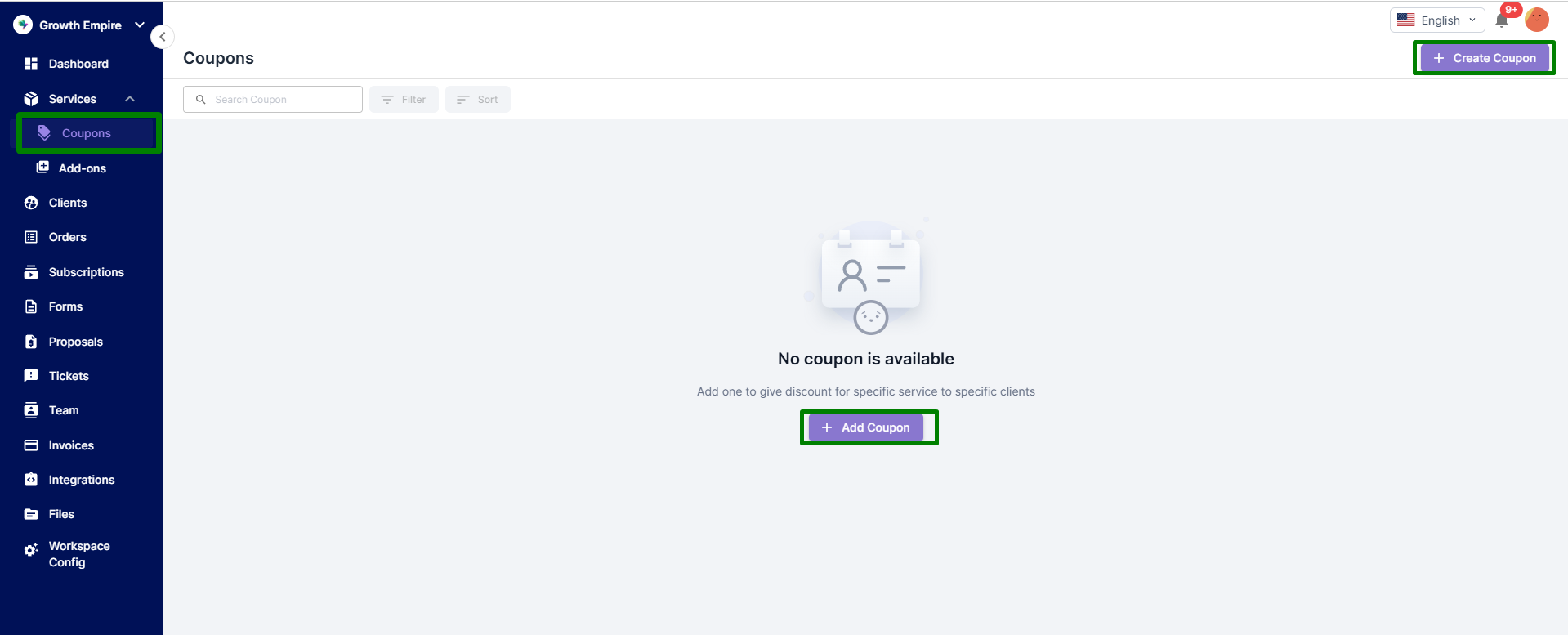 * Navigate to the "Services" section and click on "Coupons."