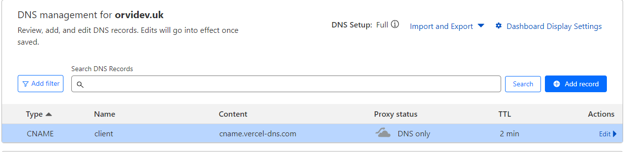 <figure><img src="https://842362573-files.gitbook.io/~/files/v0/b/gitbook-x-prod.appspot.com/o/spaces%2FiedbxyF6rrnGBuHuFME1%2Fuploads%2FiNOi1eA7EZ0Ay7TxgiS7%2FScreenshot_31.png?alt=media&#x26;token=d73d7a5b-b20b-49bf-bc25-4e2bb884408c" alt=""><figcaption><p>Cloudflare DNS Setup</p></figcaption></figure>