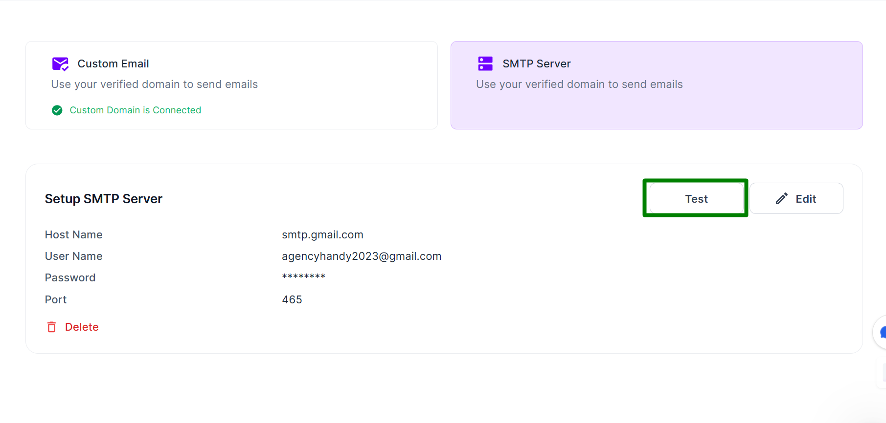 * Switch between **Custom Domain Email** and **SMTP Email Provider** anytime, but only one can be active.